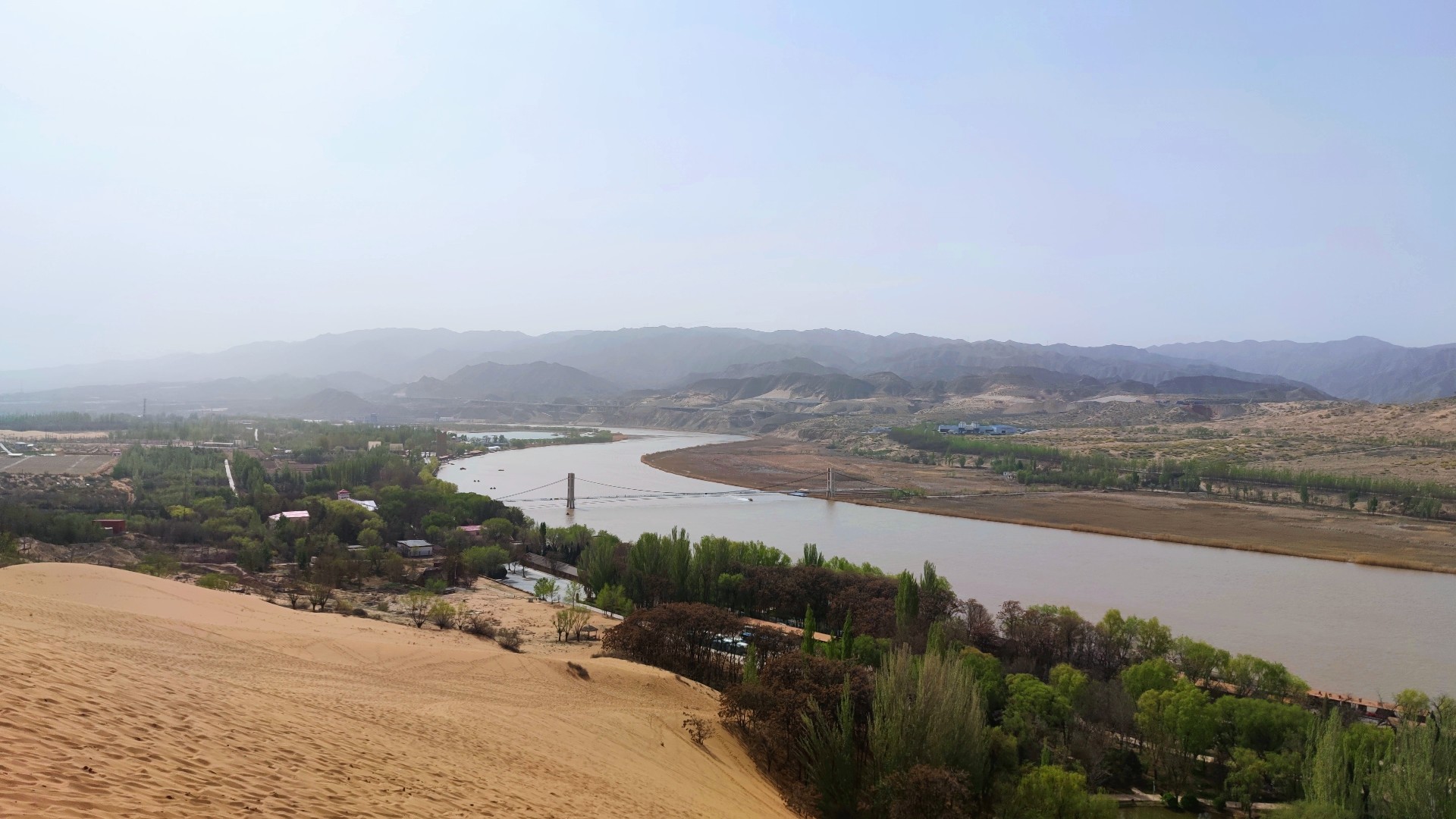 第四天去沙坡頭體驗一下王維詩中大漠孤煙直,長河落日圓的壯觀,感受沙漠的浩瀚與雄偉壯闊,坐著羊皮筏子暢游了母親河-黃河。
