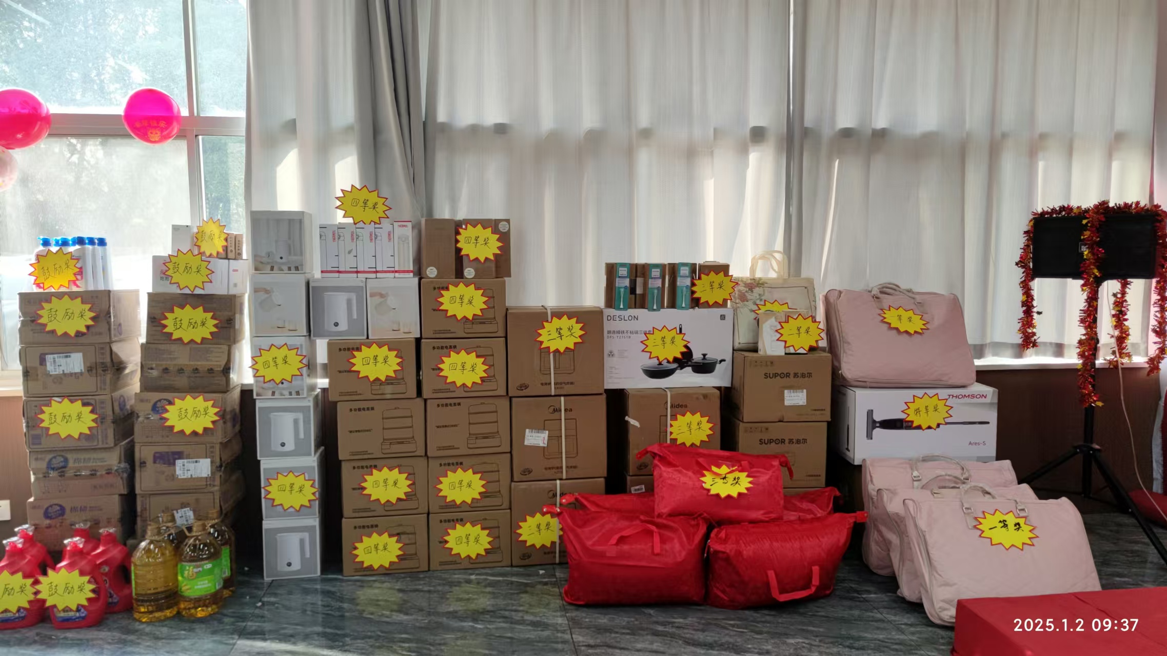 此外,按照慣例,年會(huì)設(shè)置互動(dòng)游戲和六個(gè)抽獎(jiǎng)環(huán)節(jié),且中獎(jiǎng)率 達(dá)到了50%,真的讓人滿心歡喜。這不僅是福利,更是公司對(duì)大家一年辛苦的認(rèn)可。每一次抽獎(jiǎng)都扣人心弦,同事們聚精會(huì)神盯著抽獎(jiǎng)箱,歡呼與惋惜交織。高中獎(jiǎng)率讓人人都有盼頭,拉近了彼此距離,平日的辛勞在這份期待與喜悅中煙消云散,大大增強(qiáng)了團(tuán)隊(duì)凝聚力,也讓新的一年工作更有干勁,對(duì)公司滿懷感恩與熱忱。